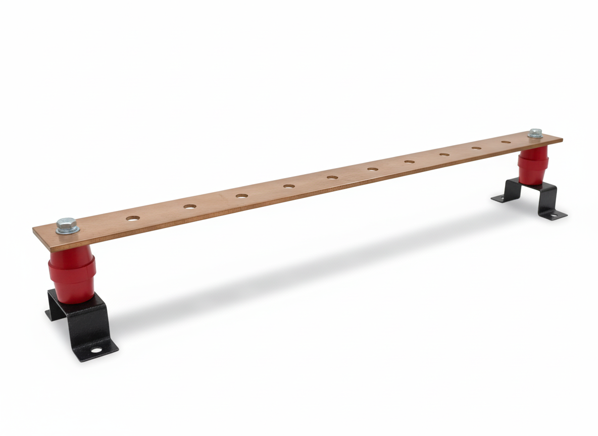 - Integrated Insulated Mounts: Each busbar comes equipped with robust red insulators, vital for providing essential electrical isolation. These insulators prevent short circuits and ensure secure, compliant mounting, enhancing overall system safety.