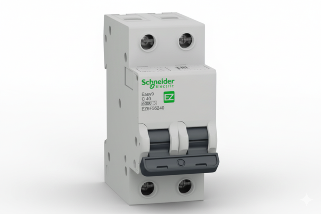 This Easy9 product is a low voltage miniature circuit breaker (MCB). It is a 2P circuit breaker with 2 protected poles and 40A In rated current and C tripping curve. The rated short circuit breaking capacity goes up to 10000A at 220VAC conforming to IEC 60898-1 standard. It is compliant with IEC 60898-1 standard. This product has a protection against short circuit and a protection of cable against overloads. It has a fault tripping indication on the front panel by the position of the handle (O-I engraved). This product is dedicated for residential and small commercial buildings. It has an electrical endurance going up to 4000 cycles and a mechanical endurance going up to 10000 cycles. The Ue operational voltage is 220VAC. The Ui rated insulation voltage is 500VAC. The Uimp rated impulse withstand voltage is 4kV. The operating frequency is 50Hz or 60Hz. It can be mounted on DIN rail for modular installation. Its width is 4 pitches of 9mm. The product colour is light grey (RAL7035). The dimensions are (W) 36mm x (H) 81mm x (D) 66.5mm. According to IEC 60529 standard, the degree of protection is IP20 and IP40 in enclosure. The operating temperature is -5°C to 60°C. The storage temperature is -40°C to 85°C.